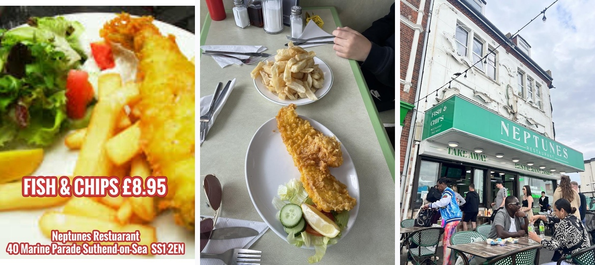 Welcome to Neptune’s Fish Restaurant, your go-to destination for delicious fish and chips in Southend-on-Sea! Located on the picturesque Marine Parade, we pride ourselves on serving the freshest cod and crispy chips alongside a variety of delightful seafood options. Enjoy a casual dining experience with outdoor seating, or grab a quick bite to take away. Our menu caters to all, including a kids' menu and fast options for solo diners and families alike. With daily opening hours, we’re perfect for lunch, dinner, or a sweet dessert. Visit us and discover why we’re a seafront favorite!Customers rave about the delicious cod and chips, frequently noting the crispy, golden batter that sets it apart from typical seaside dining. People appreciate the generous portion sizes, often finding themselves satisfied well beyond expectations. The nostalgic saveloy and classic mushy peas receive high praise, transporting many diners back to cherished childhood experiences. The outdoor seating adds a special touch, allowing diners to soak up the seaside atmosphere while enjoying their meals. Neptune’s friendly service and quick turnaround times are often highlighted, making it a convenient choice for those in a hurry. Furthermore, the pleasant view of the seafront enhances the overall dining experience, providing a perfect backdrop to the delicious food.